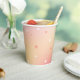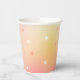 Estas tazas de papel para fiesta de despedida de soltera presentan una dulce paleta de colores de melocotón, rosa y amarillo con estrellas dispersas. ¡Vea la colección para artículos coordinados!
