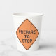 Una señal de tránsito que dice prepararse para parar. Este diseño parece realmente efectivo en estas tazas de papel