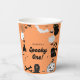 Copa de papel temático de Halloween con un fantasma, gato negro, araña, murciélago, caramelos, velas, araña y calabazas para un primer cumpleaños. "¡Espeluznante Copa de Fiesta de Cumpleaños!""PERSONALICE fácilmente este diseño con su información!", dice el texto. Si busca ARTÍCULOS DE COINCIDENCIA, busque nuestra selección o tienda de correspondencia.