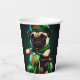Un amigo peludo detrás de las manillares de una brillante bicicleta verde, usando un traje verde del Día del San Patricio que hace que las cabezas se vuelvan. El perro está vestido con un conjunto festivo, con una corbata verde de arco y un sombrero superior a juego que se sienta cómodos sobre su cabeza. El conjunto presenta un diseño intrincado de rocas de champú y leprechauns, lo que deja claro que este perro está listo para celebrar el Día de San Patricio con estilo.