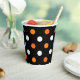 Añade sofisticación y capricho a tu casa y a tu armario para la temporada de Halloween con nuestro audaz patrón de puntos de Halloween, con dos tonos de naranja mezclados con puntos de polka blancos sobre un fondo negro.