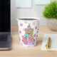 ¡Aquí hay tazas de papel para una fiesta de cumpleaños de bebé o niña! Presentan un adorable oso de peluche vestido con un gorra de cumpleaños rayado en rosa, verde y lavanda. Delante del oso hay paquetes de regalos de polika dot. La imagen del oso se coloca sobre un fondo de bonito lavanda, rosado y blanco de puntos de polka. La imagen del oso está en dos lados de la taza. El texto del personalizado entre las imágenes actualmente dice Feliz Cumpleaños (Nombre del Niño) pero puedes cambiarlo a lo que quieras. *Gracias a Real Deal Clipart por la imagen de un clip que se usó para crear este diseño.