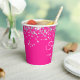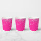 Crea tu propio purpurina de plata y tazas de papel fiesta rosado caliente de 40 años para tus invitados. El texto presenta una caligrafía clásica elegante, acompañada de un tipo de letra serif con todos los mayúsculas. Personalizar los estilos de letra para crear tu propio vajilla para su celebración especial. Personalizar el color de fondo rosado caliente.