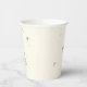 Tazas de papel caprichosas con un esquema de colores granate y negro, combinadas con iconos dibujados a mano de cócteles, bebidas, limones y lazos.