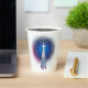 Ilustracion gráfico de una moderna torre de radio o comunicación con señal radiante y fondo colorido.