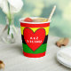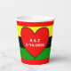Tapas de papel Afrocéntricas taza de rayas dramáticamente vívidas de inspiración afrocéntrica rojo, amarillo, negro y verde usadas para diseñar estas tazas de papel con un corazón rojo. Diversión para hombres y mujeres. Por celeste@khoncepts.com