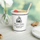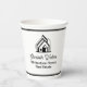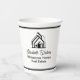 This professional realtor paper cup is custom made with your real estate company name under the modern cursive script for an open house. This trendy minimalist white and black realty business party decor features a house logo image for home builder or realty agent company marketing.