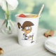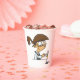 Chica llevando a cabo un experimento científico con un quemador bunsen. Este diseño parece realmente efectivo en estas tazas de papel