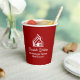 This professional realtor paper cup is custom made with your real estate company name under the modern cursive script for an open house. This chic custom red realty business party decor features a house logo image for home builder or realty agent company marketing.