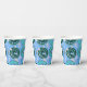 Resumen, geoformas en diseños verdes y azules en tazas de papel. Guay para cualquier fiesta.