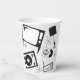 Diseño retro en blanco y negro de televisores, radios, lámparas, discos y récords de reproductores en tazas de papel. Diversión para cualquier evento, especialmente para un fiesta de retiro.