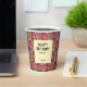 Esta taza de papel retro groovy presenta una flor de margarita abstracta en un estilo trippy mugriento, sin fisuras en un fondo marino.