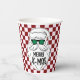 Retro Red Pink Checkered Santa Claus Christmas Paper Cups.