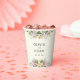 Serve your drinks in style with these personalized boho floral wedding paper cups. Featuring the couple’s names and wedding date, they bring a charming rustic touch to your celebration perfect for receptions, cocktail hours, and outdoor weddings.