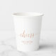Este diseño de taza de papel presenta elegantes letras de guión "Cheers" en un tema de color oro subió. Puedes personalizar el texto y añadir este vaso de papel a cualquier evento (fiesta de cumpleaños, boda, aniversario, fiesta de jubilación, fiesta de vacaciones, etc). En mi tienda BaraBomDesign hay disponibles invitaciones y suministros para fiestas coincidentes.