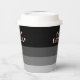 Este sencillo y estético vaso de papel presenta una tipografía en negrita de color dorado subió sobre un fondo de rayas de color de tono negro. Puede personalizar fácilmente el texto.