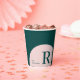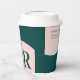 Esta taza de papel moderna para café presenta una inicial simple con bloques de color elegantes (Rosa & Verde Aguamarina). Agregue su información de marketing a esta taza personalizada. Puede usar esta taza personalizada en su lugar de trabajo, tiendas, eventos de la empresa, etc.