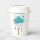 Llave de oro antiguo con rosas turquesa de moda decorados con hojas de oro blanco y cuentas rosas y azules. Color de moda. Rosas turquesas. Oro blanco. Tifanía azul.