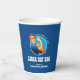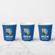 Elegante Rosie el Riveter LABOR DAY tazas de papel BBQ, con fondo azul medio. El diseño muestra el icónico Rosie apareciendo dentro de un círculo azul claro, con tipografía audaz. TEXT IS PERSONALIZABLE para que pueda agregar los nombres de host y los detalles del evento. Estas tazas de papel del Día del Trabajo son una elegante incorporación a tu vajilla de fiesta de verano y una excelente manera de ayudar a celebrar el fin de semana del Día del Trabajo con tus amigos y familia.