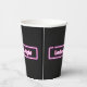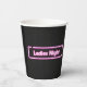 Las palabras Noche de las Damas se colocan en rosa de neón brillante en tazas de papel fiesta.