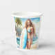 Imagen artística con chica y tabla de surf, que vive libre de deporte y diversión, en un maravilloso paisaje de naturaleza exótica.