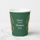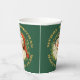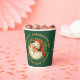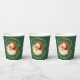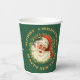 Estos vasos de papel de los Navidades presentan un maravilloso retrato retro de Santa Claus rodeado de escaramuzas. Está enmarcado con un texto curvo de oro que dice "Feliz Navidad" y "Feliz Año Nuevo". La imagen se imprime dos veces en las tazas, y el texto de su personalizado está en blanco en el centro. Todo está colocado sobre un fondo verde de vacaciones.