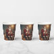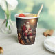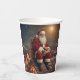 Estas tazas de papel muestran a Santa Claus tomando un descanso en la víspera de los Navidades.