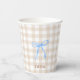 Una acogedora impresión de gingham, una colección de duchas para bebés con temática de café para la futura madre.