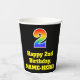 Este fascinante y divertido diseño de taza de papel con temática de cumpleaños presenta un gran número "2" con un patrón inspirado en el gradiente del espectro arcoiris. También incluye el mensaje "Feliz segundo cumpleaños", y un nombre de personalizable. También tiene un fondo de color negro. Vibrantes y coloridas tazas de papel como esta pueden ser divertidas de tener en una fiesta de cumpleaños que se lleva a cabo en celebración del segundo cumpleaños de alguien. [~Z0000537]