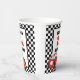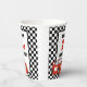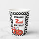 Carro de raza roja en tazas de papel fiesta de 2º cumpleaños con bandera de color blanco y negro. Personaliza con el nombre y la edad del invitado de honor. Comuníquese conmigo para obtener ayuda con sus personalizaciones o para solicitar productos adicionales de correspondencias o coordinación de Zazzle para su fiesta.