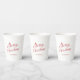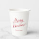 Cuta taza de papel con tipografía moderna y un diseño sencillo con "Feliz Navidad" en un elegante guión rojo junto con el nombre de tu familia sobre un fondo blanco. Estas tazas de papel son perfectas para añadir un toque personal a tu fiesta de vacaciones.