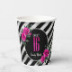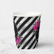 Vasos De Papel Silver Foil Stripes Floral Hot Pink ID759