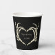 Añada un toque espeluznante y personalizado a su boda con estas tazas de papel. Estas tazas desechables son negras y presentan un ilustracion de manos esqueléticas en forma de corazón que enmarcan los nombres de la novia y del novio y la fecha del boda. El gráfico y el texto están en color crema o marfil. El estilo macabro es perfecto para bodas de octubre o eventos con temática de gótico.
