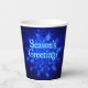 Una temática invernal con un enjambre de copos de nieve fractales azules. El texto que dice "Saludos de temporada" aparece en azul y blanco resplandeciente. Personalizar por su propio texto adicional en el reverso.