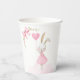 Add a sweet and elegant touch to your baby girl’s first birthday celebration with these personalized “Some Bunny Is Turning One” paper cups. Featuring a watercolor bunny in a blush pink dress, delicate floral accents, and a classic pink bow, these cups are perfect for serving juice, punch, or party drinks at a charming bunny-themed first birthday party.