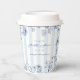 Decorate the table of your "something blue" bridal shower with our custom paper cups featuring classic chambray stripes and navy floral line art.