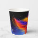 Fiery phoenix sobrevolando el espacio en una nube nebulosa azul y púrpura en un cielo estrellado por la noche. Un brillante grupo de estrellas forma la constelación fénix. ♡ Idyllfire
