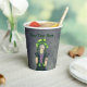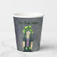 These paper cups are grey with an eerie glow and a spooky Gothic girl wearing a bright green hat, black and purple dress, with spiderweb and crescent moon tattoos. Customise your text with the templates on the front and back.