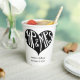 Añade un toque divertido a tu boda con estas tazas de papel personalizadas. Presentan un gráfico en negrita en el centro con "Mr & Mrs." con letras blancas dibujadas a mano dentro de una forma de corazón negro. Estos suministros de fiesta están listos para ser personalizados con el nombre de la novia y el novio y su fecha boda.
