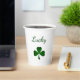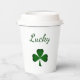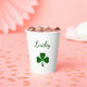 Taza de papel con suerte del Día de San Patricio, con un diseño de shamrock verde sobre un fondo blanco. Con la tipografía de escritura verde, puede personalizar con su propio texto. Excelente para tu fiesta o celebración del Día de San Patricio.