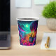 A beautiful and terrifying composition! The cup design utilizes a strong vertical perspective to show the hot air balloon ascending away from the swirling clouds and the neon-lit horrors of the haunted amusement park. The spooky colors—deep purples, cyan flashes, and emerald greens—make this an instantly eye-catching and mood-setting piece. This design offers a vast, sweeping aerial shot of a thoroughly haunted theme park. Every detail is rendered in neon spooky colors, giving the cup a vibrant yet sinister look. The tiny figures of Shaggy and Scooby in their oversized balloon basket provide a sense of scale, highlighting the impressive and intimidating scope of the creepy carnival they're floating over.