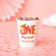 Celebrate a milestone with these charming One Sweet Peach first birthday paper cups. Featuring a blushing kawaii peach character with vibrant watercolor tones, this design brings a cheerful pop of color to your dessert table. These are the perfect choice for parents hosting a summer-themed "One Sweet Peach" celebration for their little girl.