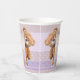 Elegantes tazas de papel con lila con diseño de melocotón con puntas de encaje y polka y un lindo oso de peluche. Hermoso para una ducha de bebé.