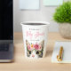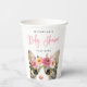 Cubos de ducha con temática de gato, con un guión rosa llamativo y un gato acuarela pintado con flores rosas y malvas cerca del fondo del diseño. Personalice las tazas de papel para la ducha con temática de gatito con el nombre de la futura madre y la fecha de la ducha para bebés. El diseño se repite en la parte posterior.
