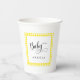 Copas de papel Baby Shower de Gingham amarilla. Personalizado.