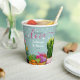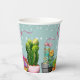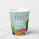 Vajilla brillante y colorida para la fiesta de parejas Taco 'Bout Love con elegante caligrafía en rosa, plantas de cactus y flores acuarela, luces de hadas, los nombres de las parejas y fecha.