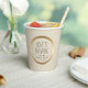 Una taza de café de papel personalizada para la novia y el novio, personalice este diseño con sus nombres y fecha de boda en lugar del texto de muestra que se muestra. Es una idea atenta para una fiesta de despedida de soltera, desayuno de boda o fiesta de compromiso. Estas tazas contienen bebidas calientes o frías y se pueden pedir con o sin tapa.