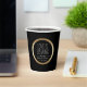 Una taza de café de papel personalizada para la novia y el novio, personalice este diseño con sus nombres y fecha de boda en lugar del texto de muestra que se muestra. Es una idea atenta para una fiesta de despedida de soltera, desayuno de novia o fiesta de compromiso. Estas tazas contienen bebidas calientes o frías y se pueden pedir con o sin tapa.