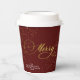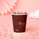 Saluda a tus huéspedes, amigos y familia con este elegante y moderno tazas de papel de Navidades de la temporada navideña, con un bonito escrito a mano con un guión falso de oro, "Merry", sobre un elegante fondo burdeos, con un falso purpurina de oro. Agregue fácilmente su evento o cualquier otro texto al personalizar de la plantilla.