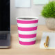 Taza de papel rosa y de franja blanca